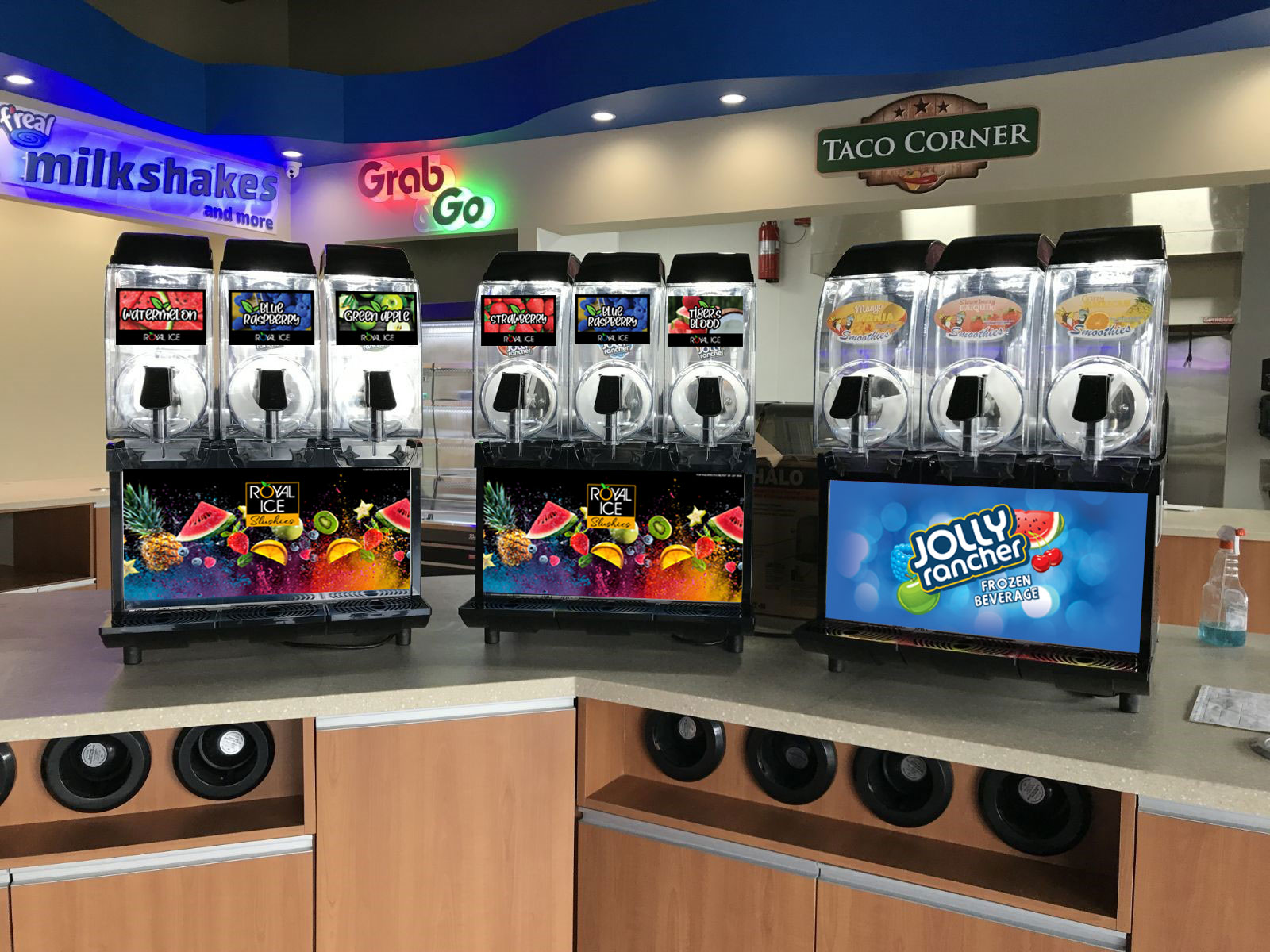 Offering quality brands including Royal Ice and Jolly Rancher Slushies and Royal Smoothies to add flavor to your frozen beverage!